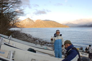 海老沢さんとの芦ノ湖トローリング。